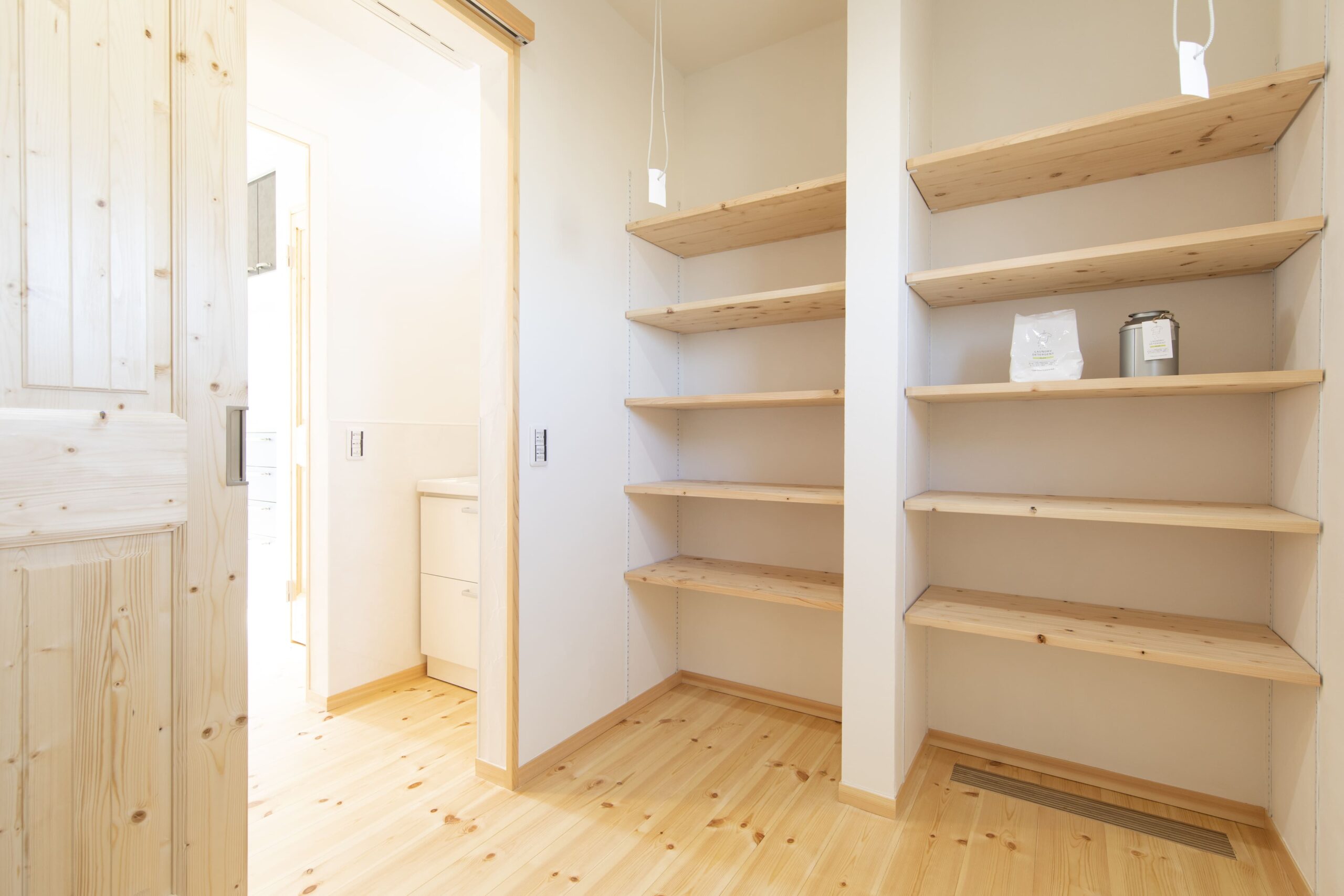 ジャパンディランドリールームファミリークローゼット和室/畳コーナーパントリー小屋裏収納2階建て